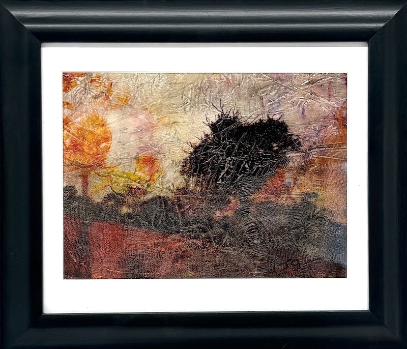 Digital layered photography on Mixed Media and hand painted fabric substrate. 36 x 31cm framed
